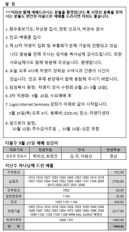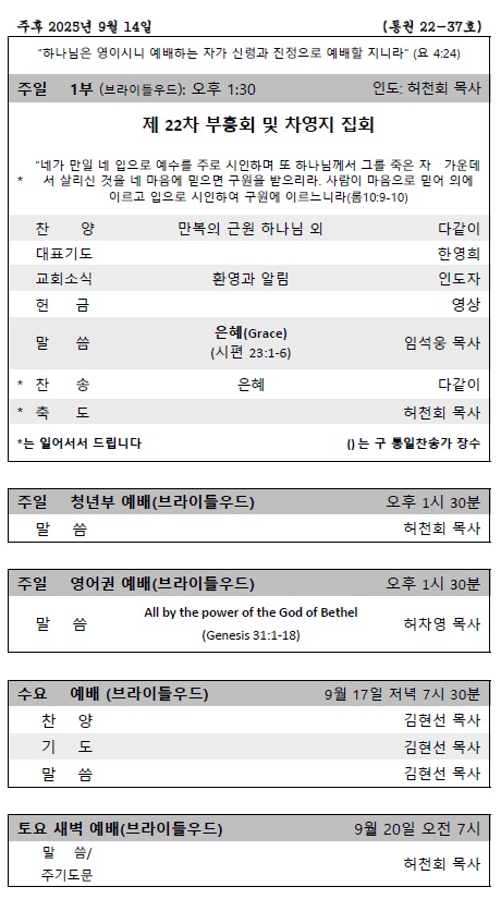 2025년 9월 14일 주보(부흥회 , 차영지 집회)