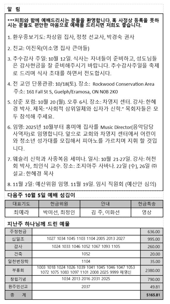 2025년 10월 5일 주보