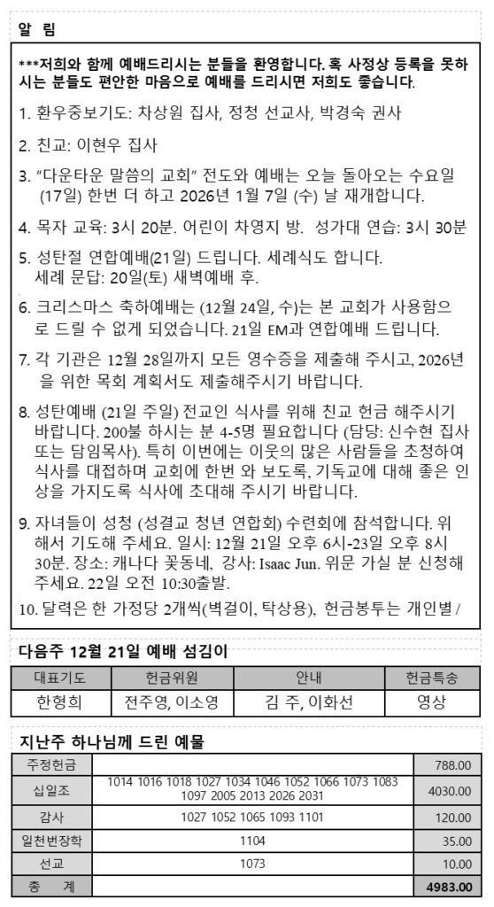 2025년 12월 14일 주보