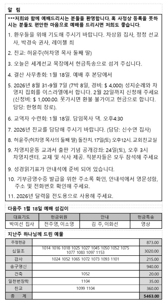 2026년 1월 4일 주보